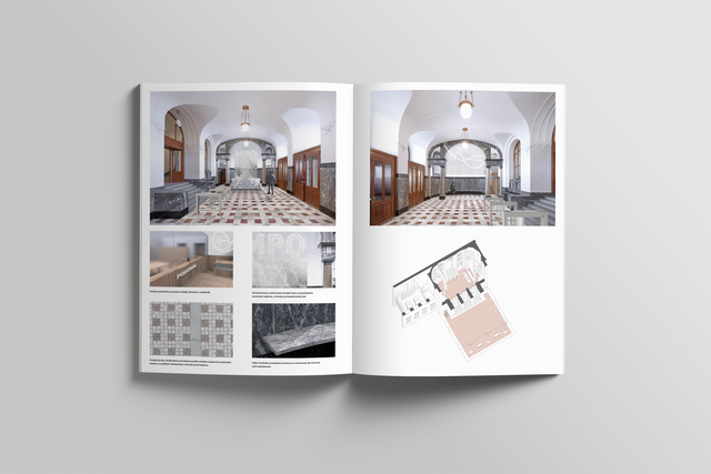 In the last step, I present student alternative projects and also my project, a winner in a public architectural competition for the reconstruction of the vestibule and entrance areas of the Ministry of Industry and Trade in Prague, in which I work with tree values freedom, equality and control in architectural way.