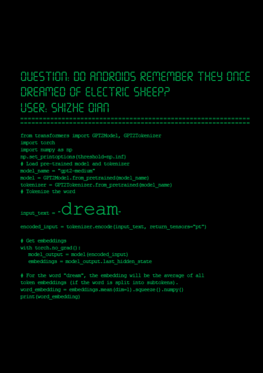 My research paper, Do Androids remember they once dreamed of Electric Sheep? investigates the interplay between artificial intelligence and human cognition, focusing on the theme of "dreams" as a metaphorical and literal framework for understanding large language models (LLMs). Starting with a personal reflection on the nature of knowledge, the research probes the philosophical question of what can truly be known, using the enigmatic functionality of LLMs like ChatGPT as a focal point. It challenges traditional views by comparing the often-unpredictable outputs of LLMs to the elusive and revealing nature of dreams.