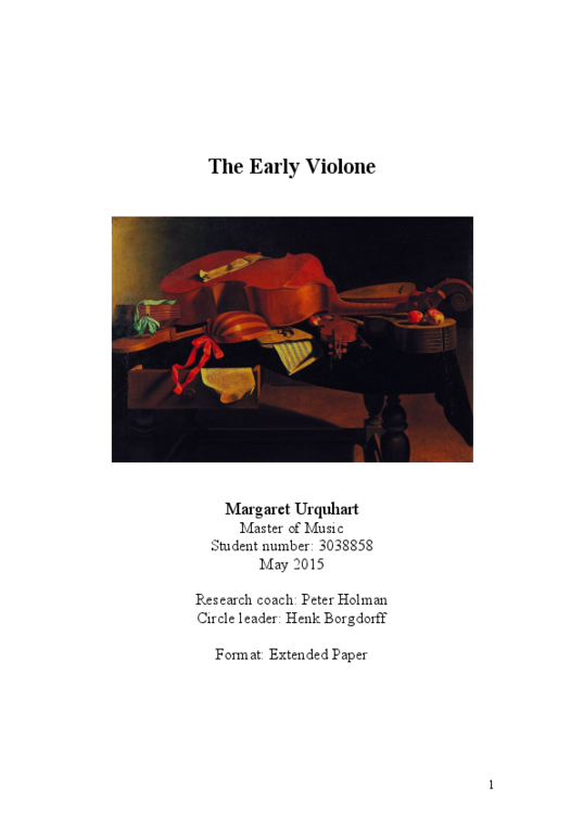 After looking at evidence of the emergence of the first low bowed string instruments in Europe, this paper follows the types and use of the main instruments which could be termed violones till 1700, mainly centered in Italy. Through the study of treatises referring to the violone, scores using the term, iconography, secondary sources and the reconstruction of a copy of a violone from 1590, it follows the development of the violone till it becomes an octave-doubling instrument. The presentation of the extended paper will include a closer look at the issues surrounding the history of, and the term, violone, and live performance of music demonstrating the early violone, together with two viola da gambas in a consort.