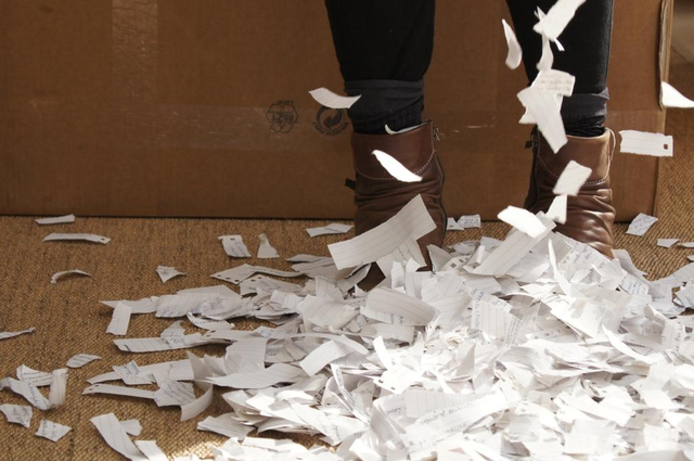 In this exposition we articulate and question our own artistic working process and aesthetic, while exploring how we can make the making of work matter as much as the documents that are made afterwards. We use the remnants of the making of a performance, which began as a dialogue, to make a new performance, with images and words which we take apart and put back together. The act of talking is transcribed, then transformed then transcribed again to be reflected upon now. By exploring the materiality of the paper we read and write on, and examining how it is made, we question the hegemony of text and the pressure we are all under in the Academy to produce evermore outputs. We investigate the complex relationship between practice and research and question whether we can make and think, create and theorise, do and write about doing, without devaluing one and prioritising the other.