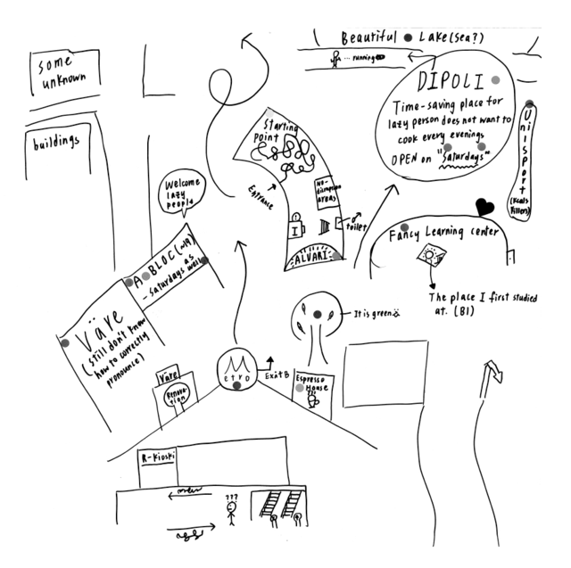 The study places mental images inside Lefebvre's triad of social space (Lefebvre, 1991). It suggests that mental images are a manifestation of the third component of the triad, the lived space, which includes alternative imaginations, symbolic values and appropriations of space. The exposition explores this claim via a dataset of 37 mental maps created by Masters-level students at Aalto University in Finland in November 2018. By qualitatively analysing the contents and the morphology of the hand-drawn maps, it traces how the lived space is both passively perceived and actively re-imagined.