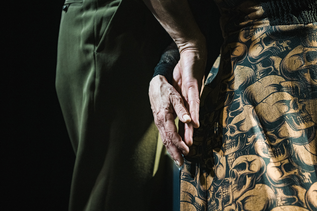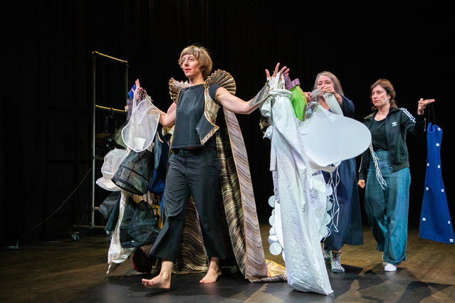Alongside methodological development, a strong interest in my identity as a maker emerged, deeply influencing my artistic inquiry. This stiltedness—as a young female artist from Latvia and Eastern Europe—shapes the themes of belonging and alienation in the Scandinavian cultural context and intersectionality in my work. I investigate how cultural, gendered, and geopolitical factors inform performance and dramaturgy. These personal reflections have evolved into shared thematic concerns within my collaborations, where individual histories and embodied memories merge into a collective exploration. Through this research, I seek new dramaturgical forms that channel socio-political narratives within primarily visual and poetic means of expression.