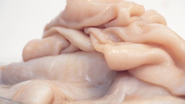In this exposition, I confront my feelings about having been transnationally adopted. I do not consider adoption a ‘win-win situation’, and I encourage people to think critically about the practice as well as the glorification of it. The colorblindness with which I was encountered as a PoC growing up with white parents was an existential complication for me. I was plagued by feelings I could not understand at the time and grew isolated. I want to visually express the feeling of being estranged and alienated from one’s own body and the fear of drowning in one’s own skin. I have often felt compelled to unzip my skin suit and leave it next to my trousers in a heap on the floor. In this project, I grow my own skin in a vat – or more specifically, I grow a kombucha culture in tea and sugar. During the fermentation process, the kombucha culture creates a cellulose material that resembles human flesh. The process is a slow one, and developing the material demands a great deal of love and nutrition. In return, I get a self-produced material that enables me to work independently.