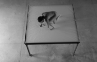 'Translucent surface/Quiet body, redistributed' is a dissemination of artistic research investigating drawing as a choreographic activity and bringing attention to the material, visual and haptic organisations of moving-drawing in relation to gravitational force and surface dimension. Working in residence and on a large table-like construction at the dance research centre L'Animal, Celrà in Catalonia, a moving-drawing body was recorded from beneath the receiving surface of the elevated table-top, offering an inverted view of surface contact between static and moving surfaces, between paper-glass and skin as the performing body worked low and close in the horizontal plane. The exposition presents a choreographic view of findings and highlights emergent coinciding capacities of surface (paper, glass, skin, screen) to support, receive, record, touch and display. Art historian Leo Steinberg’s notion of the ‘flatbed picture plane’ (1972) was reconsidered within a choreographic practice and research of moving-drawing relative to gravity, orientation and distribution of data. The exposition over the two-dimensional online page presents another surface on which to distribute observations, notes, findings as extended making-thinking, as documentary work-surface - and as flatbed.