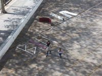 In “Follow me”, a drawing performed on the fence surrounding the construction of the new KuvA (Helsinki), we problematise drawing as an act of care and relation, built upon idiorhythmic, embodied and communal gestures in a shared space. In “Insula Perdita” we re-enact the death of palm trees in the city of Porto and the inevitable natural cycles and changes that moulds the perception of the city as a frame and ecosystem.