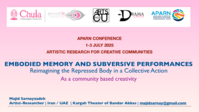 I am an independent artist-researcher from Iran, Bandar Abbas, based in Dubai, participated in many artistic conferences including; the 3th and 5th Biennial Conference of the Asian Shakespeare Association, the performance studies international conferences, the international experimental theater symposium of Shanghai theater academy and the Symposium of the Fadjr International Theater Festival, and directed one of the twelve national selected project of Tehran’s Qashqai performance studies center. My academic background is on applied mathematics(BS), philosophy of science(MA), social studies(MA). I have interdisciplinary approach in my artistic projects based on research results. I am a member of Asian Pacific Artistic Research Network, Performance Studies International, Asian Shakespeare Association and International Federation for Theater Research. H-index 4