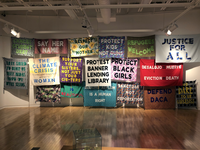An interview with the artist Aram Han Sifuentes on the occasion of her exhibition titled "Let Us Vote!" at St. Norbert College in the Fall of 2022. Aram Han Sifuentes is a fiber and social practice artist based in Chicago, IL, USA who works to claim spaces for immigrant and disenfranchised communities. Her work often revolves around skill sharing, specifically sewing techniques, to create multiethnic and intergenerational sewing circles, which become a place for empowerment, subversion, and protest. Her exhibition at St. Norbert College brings together works on democracy, citizenship, and political participation. This interview was conducted between Brandon Bauer and Aram Han Sifuentes during the Autumn of 2022.