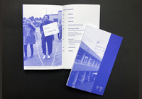 This publication by artist Andreas Liebmann investigates methods and scenarios for participatory performance art, aiming to enforce the connection of theatre work in ”real life” and its protagonists: the local citizens. Co-conceptualisation and design of a publication, presenting the research at its different stages, printed in monochrome blue.