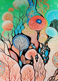 My visual designs of “Future in the past” series are both abstract and illustrative. One of their key focusses is vertical lines and unusual forms, as if suggesting the idea of an alternative perspective of growth–trees that didn't come out of water and how it changed their look. It is much about creating an entirely new world around us. I strive to create a stylization of underwater landscape, bridging together the familiar and the strange, searching the aesthetic in unusual forms.
