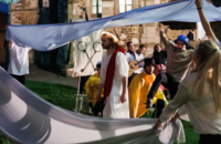 This exposition, entitled The Possibilities of Applying Elements of Czech Folk Theatre to Contemporary Street Performing Art, presents the process and conclusions of artistic research that explored the phenomenon of Baroque folk theatre performed in neighbourhood communities in the Czech countryside in the 18th and 19th centuries and the search for the application of its principles in today's theatre activity. For this research, in cooperation with the Diocesan Museum of Brno, two street productions were created in the vicinity of the Cathedral of Saints Peter and Paul in Brno to test the functionality of the means of folk theatre in today's context.