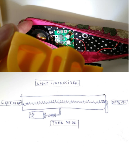 E-textile, electronic music, circuit bending sketch created at a workshop with Ann Rosén, Sten Olof Helström and Fredrik Olofsson at Vardagsrummet, with hardware from syntjuntan.se and musicalfieldsforever.com