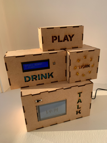 The TooDeloo Tool lights up your day. A beautiful piece of furniture that also helps you trough the day in the home office. The goal of the concept is to give the users a tangible tool with light and sound interactions, which will give friendly reminders during the workday. The Toodeloo tool keeps track of your work hours, simplifies initiating conversations with your colleagues, reminds you to drink and helps you exercise or be social.