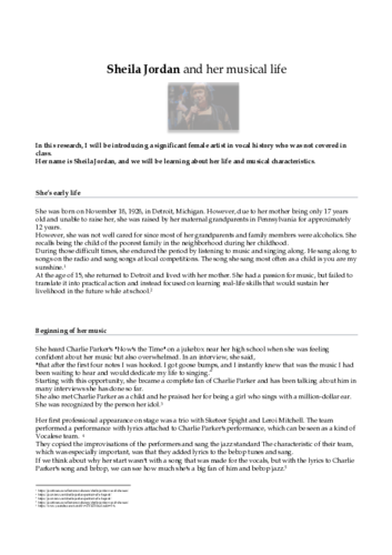 Sheila Jordan, an important female singer in the history of jazz vocals, and an exploration of her life and musical characteristics.