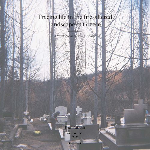 Over the past few years, fires are everywhere. The summer of 2023, the biggest wildfire recorded in Europe torched large swaths of Northern Greece; fire destroyed ecosystems and devastated local communities. This research paper is divided into two parts; the first part is based on fieldwork conducted in the fire-altered landscape in Evros, after spending time in Kirki village, hearing the stories of locals, having conversations with experts, and documenting my experiences living in the post-disaster land. It is a travelogue to a ground considered “ruined”, in a village slowly disappearing. The second part zooms in on Kirki’s cemetery, approaching it as the sole spiritual place for post-disaster relief in an effort to understand its importance for the community as well as the opportunities that arise in this burial ground. My travel was approached with a commitment to flexibility and was shaped by serendipity. In this multilayered condition of Northern Greece, it is an effort to consider the question of what’s left in the post-fire land of Kirki and what emerges in its damaged cemetery.