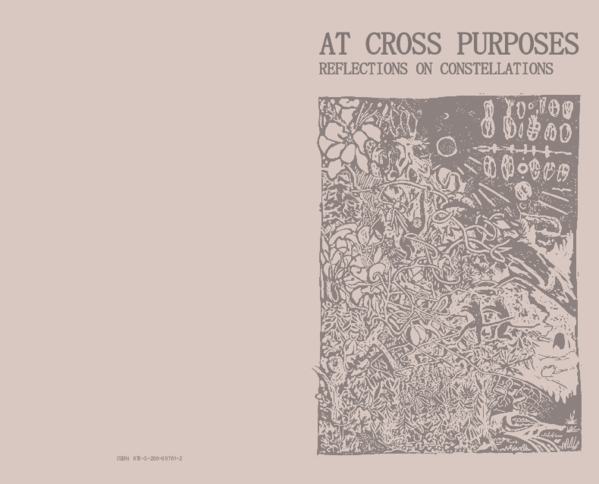 At Cross Purposes, reflections on constellations, comprises three texts by different authors on language, narrative, sign and signification, as well as poetry and anxiety in art.