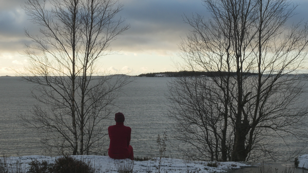 This academic exposition sits very well with the film sequences. The repeating scenes of the protagonist walking the same path, standing sitting looking over to the island, the trees, and the changing vistas due to season/weather ‘speaks’ very powerfully to the affective performativity of self-in-place/landscape and particularities of environment in terms of nature-atmospheres etc, and becoming in place and time and memory. The poem overlain on the film is very powerful.