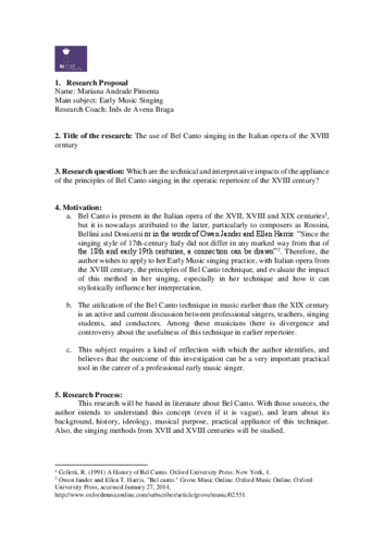 Title of Research: The technical principles of Bel Canto in the 18th and 19th centuries: