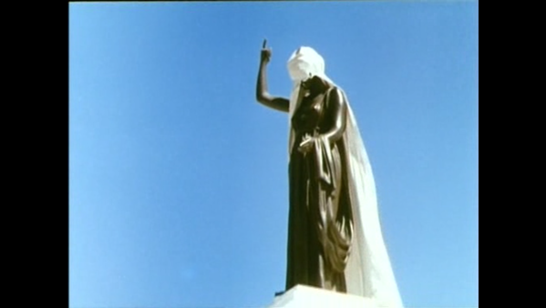 | copyright | Fig. 5. The Liberty Monument in veils. Screenshot from Michael Cacoyannis' Attila 74: The Rape of Cyprus (1975). Original title: Attilas '74 |