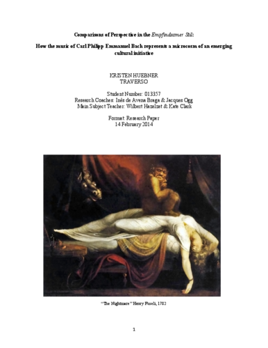 Comparisons of Perspective in the Empfindsamer Stil: How the music of Carl Philipp Emmanuel Bach represents a microcosm of an emerging cultural initiative (2014)