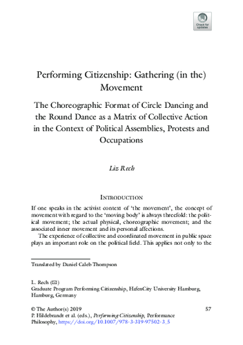 Performing Citizenship: Gathering (in the) Movement. The Choreographic Format of Circle Dancing and the Round Dance as a Matrix of Collective Action in the Context of Political Assemblies, Protests and Occupations. (last edited: 2022)