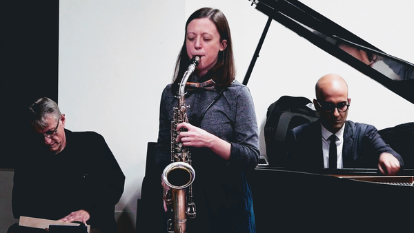 Aži Trio is an NYC-based ensemble founded by composer and pianist Saman Samadi, in collaboration with saxophonist Sarah Manning, and Buchla-player Hans Tammen.