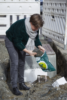 Denne leira og beholderen representerer blåleire som en del av byggeplasser og byggenæringen i prosjektet. Denne lokasjonen er et interessant ikke-sted1 i et trafikknutepunkt på Økern, der det er overraskende å finne leire.