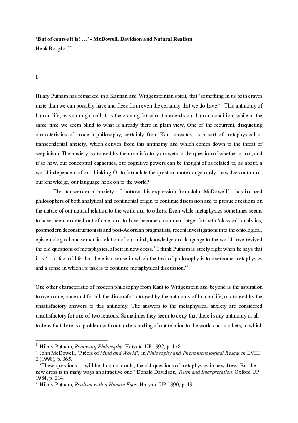 But of course it is!...- McDowell, Davidson and Natural Realism