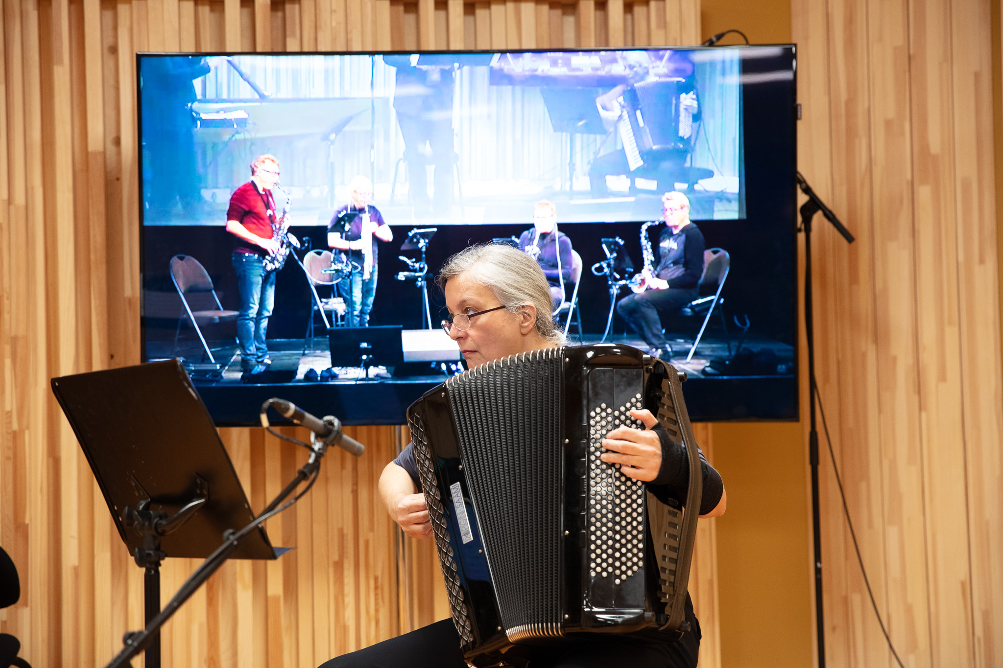Karin Haußmann, an der Stimme erkannt Ensemble Mixtura: Margit Kern, accordion Katharina Bäuml, shawm