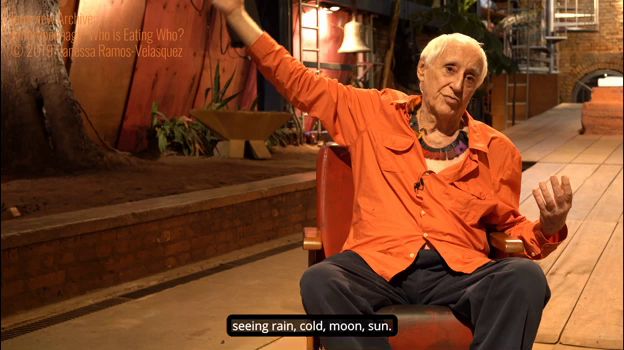 Durante a entrevista, a partir de minha pergunta sobre a magnífica árvore dentro do Teatro Oficina, Zé Celso se levanta, me pegando de surpresa tendo que seguí-lo, eu e Eliza Capai, a quem contratei para me ajudar nesta gravação. Havíamos montado duas câmeras em tripé, porém, Zé Celso percorre afetivamente e vertiginosamente o espaço teatral do Teatro Oficina, descrevendo como ele próprio, o espaço é performático. Zé Celso e Teatro Oficina se fundem em um só corpo perspectivista. Ele descreve os elementos-chave que compõem o Teatro Oficina, contribuídos por Lina Bo Bardi – musa-gênio-parceira de Zé Celso na criação arquitetônica. Flávio de Carvalho por sua vez faz sua própria oferenda de proteção ao Teatro. No decorrer da entrevista, a relação de Zé Celso com os elementos da natureza se mostra como base-terreiro fundamental por trás do êxtase provocado pelos seus espetáculos teatrais. Na mesma intensidade, descreve seu grande sonho: “O Anhangabaú da Feliz Cidade, projeto de revivescência do bairro do Bexiga"1 – pelo qual lutou durante toda sua vida. Tendo digerido as duas horas de nossa conversa, decidi incluir esse “sonho-semente” no título desse video pois para Zé Celso, a utopia é vida.
