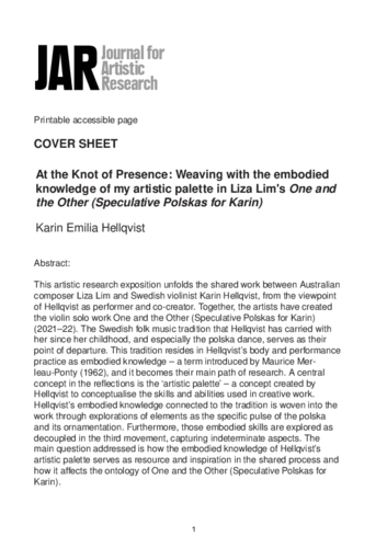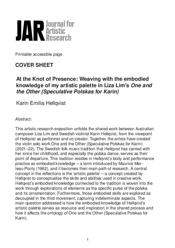 At the Knot of Presence: Weaving with the embodied knowledge of my artistic palette in Liza Lim's One and the Other (Speculative Polskas for Karin)