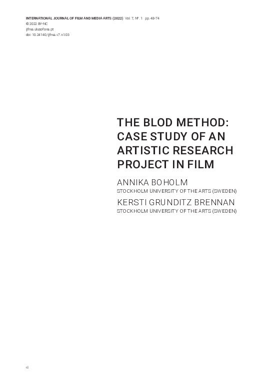The Blod Method: Case Study of an Artistic Research Project in Film - Kersti Grunditz Brennan, Annika Boholm