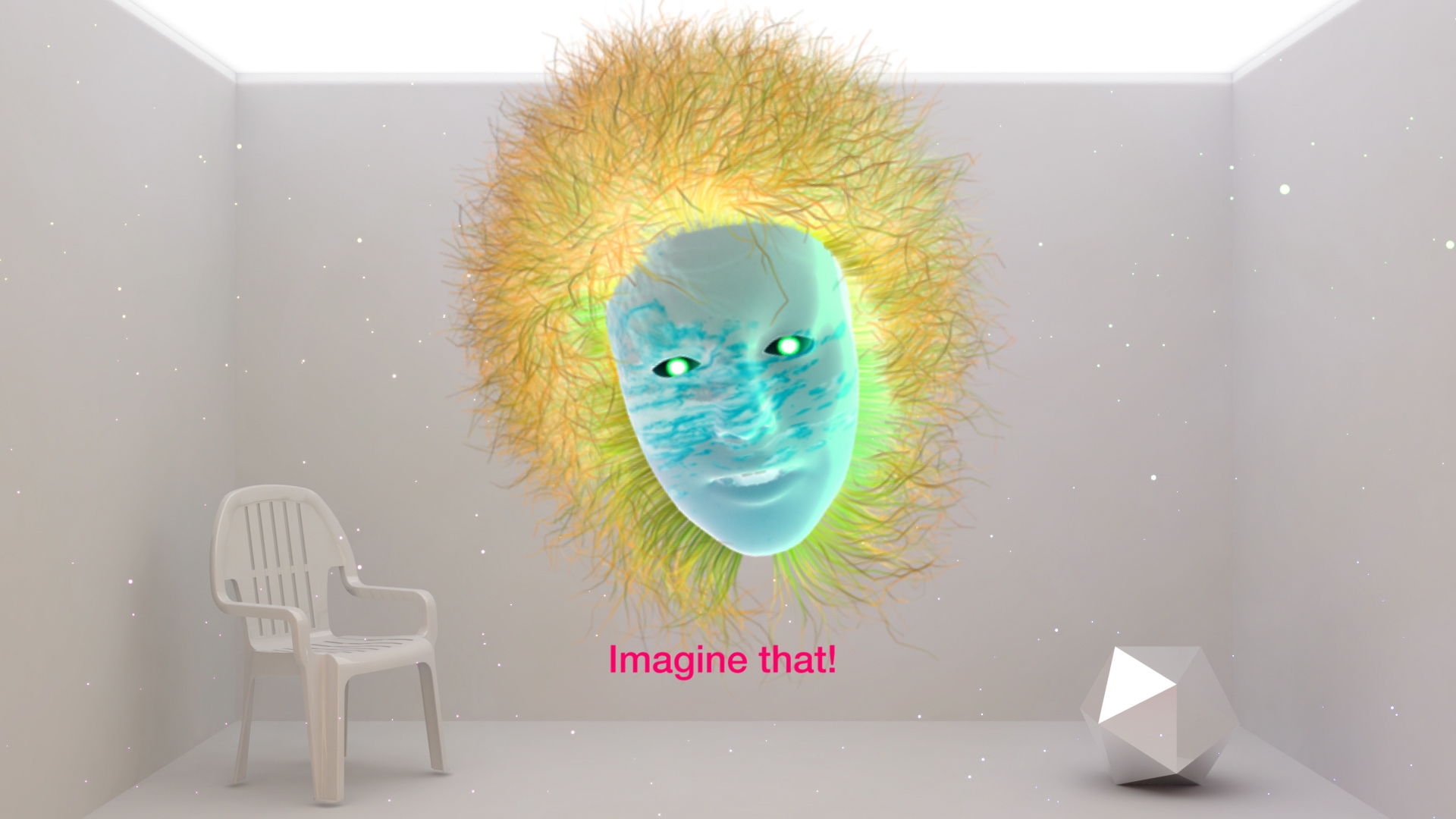 My first concern was my role as the narrator in the film’s universe: it was an artist talk, after all. I quickly dismissed live recordings, because I felt inadequately represented by my physical self in the digital spaces of my virtual studio. The most straight-forward solution was to resort to using different types of avatars, virtual ‘talking heads’.