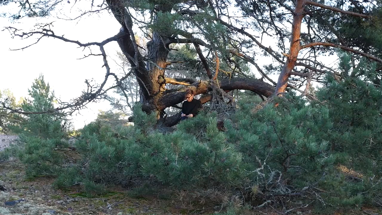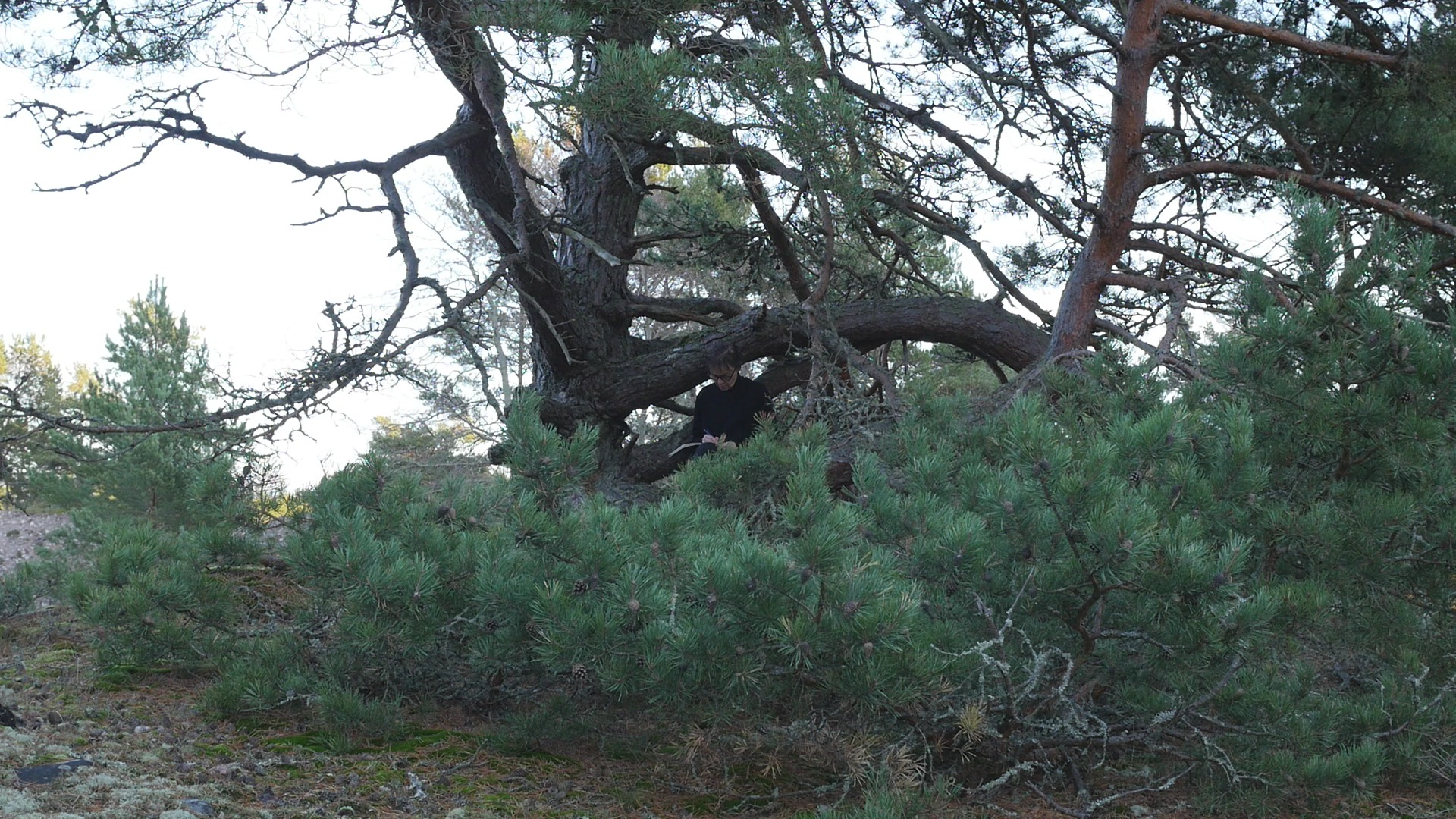 Writing with a Pine was performed, twice, with the same pine, on 10 November 2020 on Örö Island and edited into Writing with a Pine I (20 min) and Writing with a Pine II (20 Min).