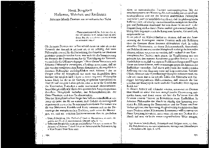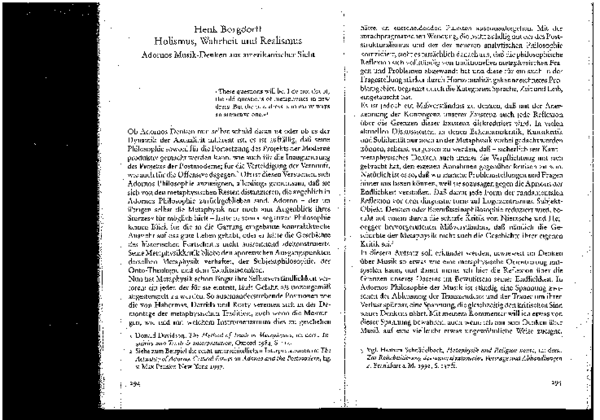 Holismus, Wahrheit und Realismus - Adornos Musik-Denken aus amerikanischer Sicht [Holism, Realism and Truth – Adorno’s Musical Thought from an American Point of View]. R. Klein und C-S. Mahnkopf, Mit den Ohren Denken - Adornos Philosophie der Musik, Suhrkamp, Frankfurt a. M. 1998