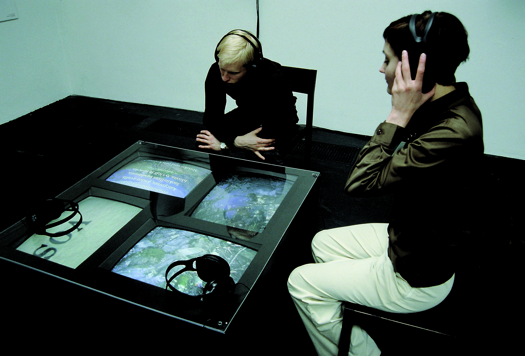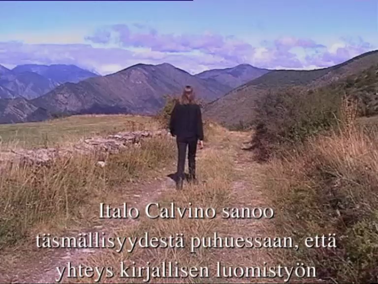 four-channel video installation (for monitors), DV 4:3, (86 min). Camera: Annette Arlander. Editing: Telma Tuomisto, Werne Oy. Music: (anon.) singer Birgitte Lesne. Text extracts from Italo Calvino Six Memos. Performed and recorded in Centre D'Arte i Natura in Farrera de Pallars, Catalonia, Spain, in September 1999.
