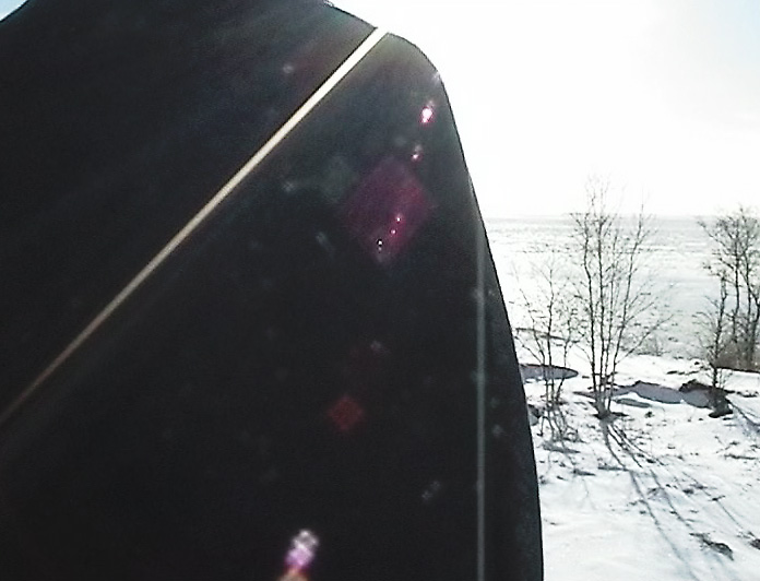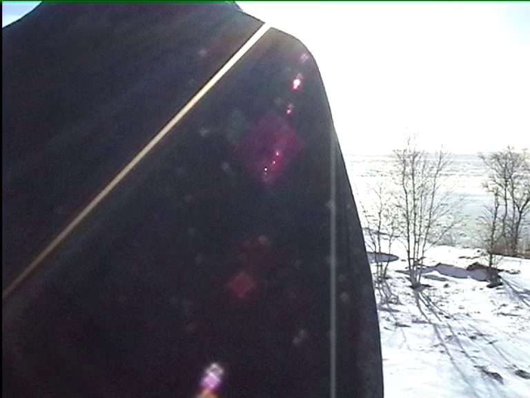 This video is a documentation of a performance. I am standing with a blue scarf on my shoulders close to the camera, obscuring part of the view from the cliff, on Harakka Island, 64 times, approximately once a week from January 2002 to January 2003.