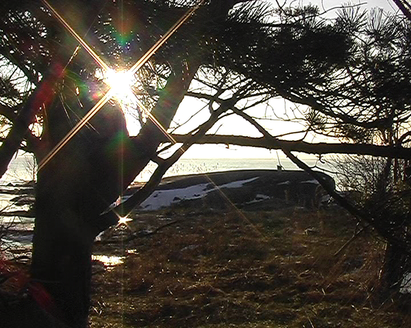 (8 min. 10 s) DV 4:3 This video is a documentation of a performance. I sit with a yellowish scarf on my shoulders in a pine tree on Southern Harakka Island 54 times, once a week 7.1.2006 – 11.2.2007.