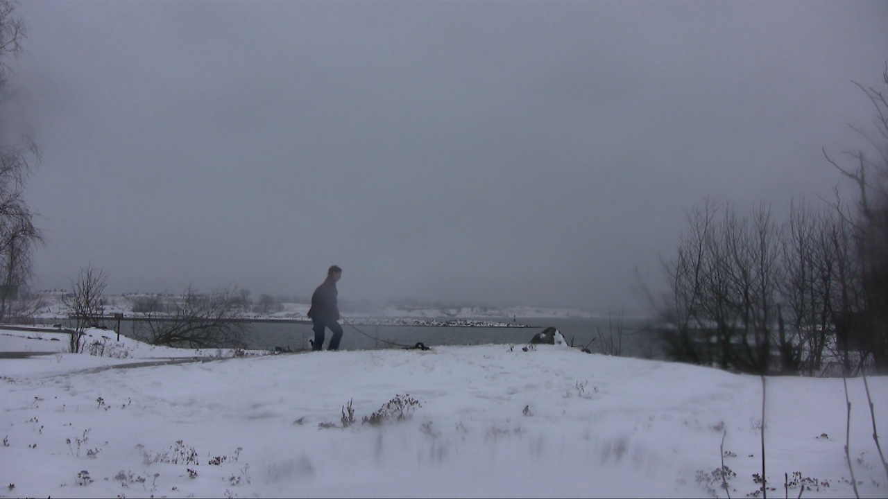 This video is a documentation of a performance. A rust coloured scarf around my shoulders, I walk in a circle tied with a chain to an iron ring on a cliff on the South Eastern shore of Helsinki’s Harakka Island once a week for a year, between 25 January 2009 and 6 February 2010.