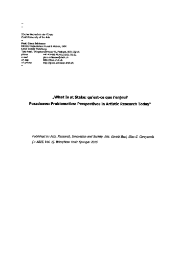 What is at stake – Qu’est ce que l’enjeu? Paradoxes – Problematics – Perspectives in Artistic Research Today.