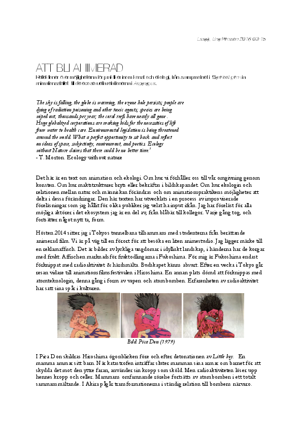 Att bli animerad, textessä svenska