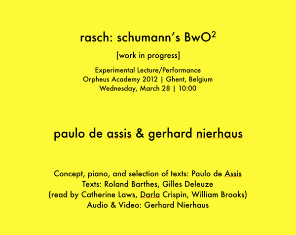 Rasch 2 – Schumann's BwO-2 for piano, tape, video, and projector. [Orpheus Academy, March 28 2012].