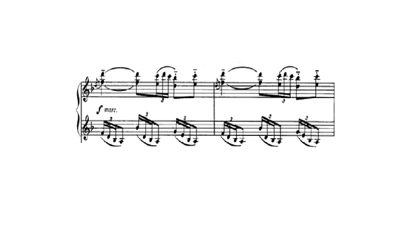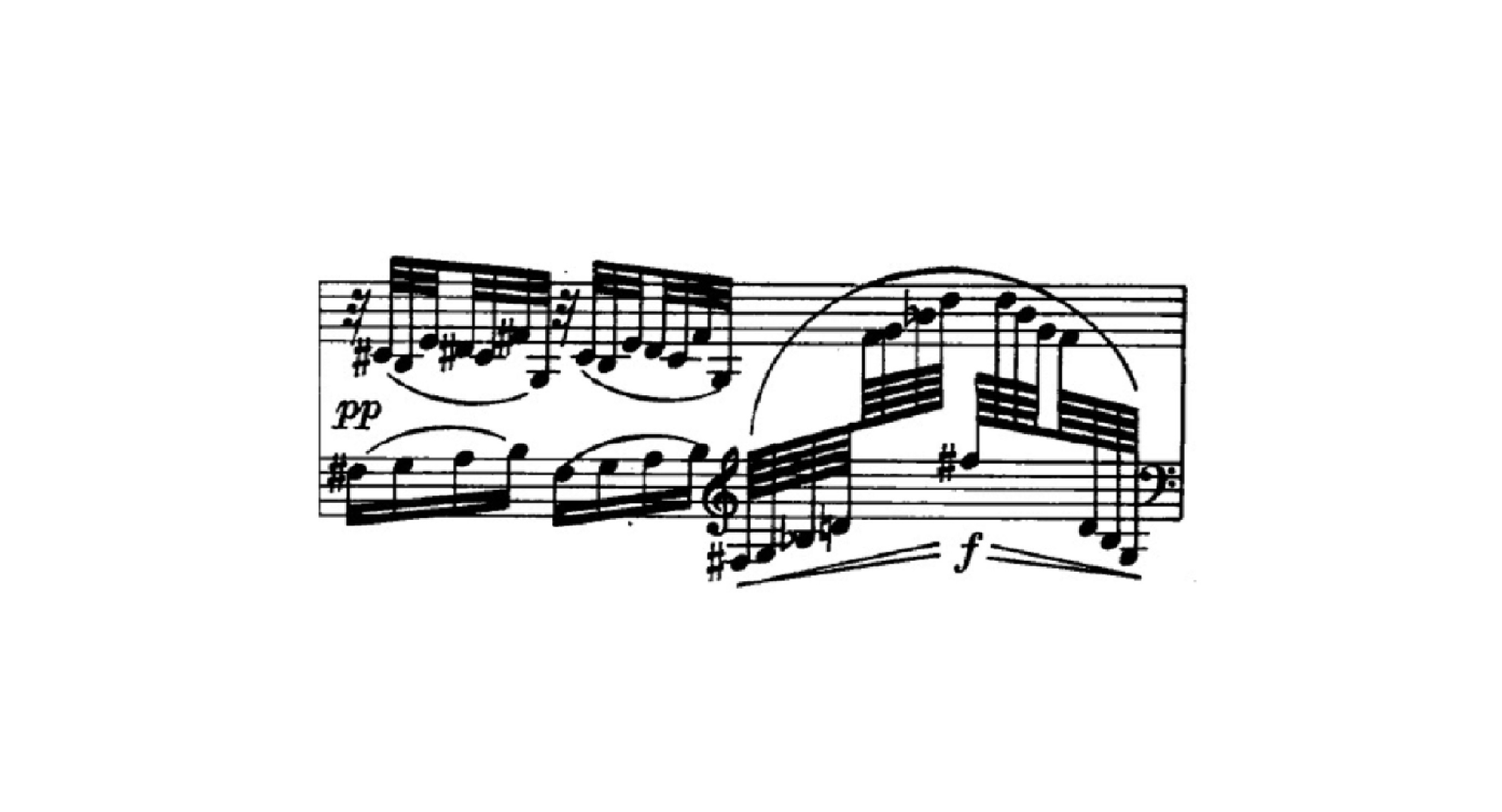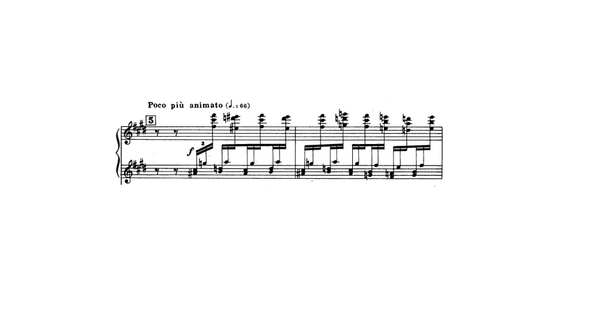 Here we see the score of the tremolando part. the thumb atack inspiration is well mark and should be played with the left hand