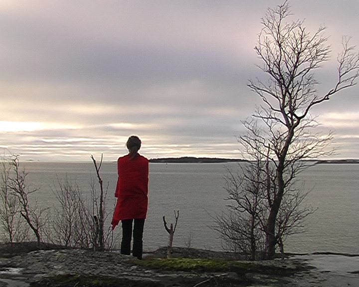(6 min 24 s) DV 4:3 This video is a documentation of a performance. I am standing with a red scarf on my shoulders in front of the camera on the western cliffs of Harakka Island 48 times, approximately once a week 8.1. – 31.12. 2005.