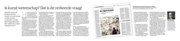 Is kunst wetenschap? Dat is verkeerde vraag!