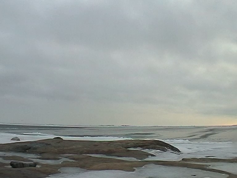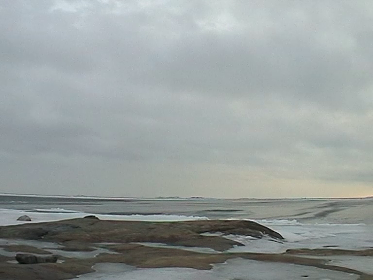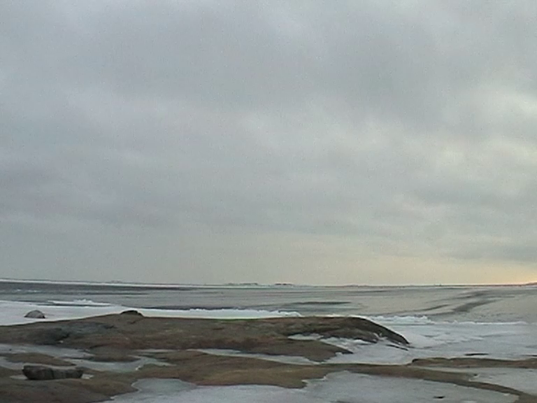 This video is a documentation of a performance. I am walking with a blue scarf on my shoulders from south to north (or left to right in the image) past the camera on Harakka Island, twice, and standing at the shore, 54 times, approximately once a week from March 2003 to March 2004.