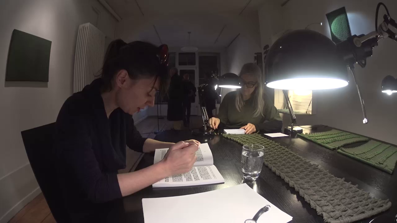 The performance unravel wittgenstein, a sophisticated colour and language game, knits together both literal and metaphorical threads. Two continuous yarn-plies build the unicolour fabric of the artwork involved in the performance. In contrast to these threads, the texture of Wittgenstein’s remarks is not linear. The performance juxtaposes the fragmented threads of the text with the continuity of the threads comprising the artwork. The piece combines the performative unravelling of the text with the unravelling of the artwork itself through an act of deconstructive ‘craft’. By deconstructing this particular text, as well as the artwork, the performance also deconstructs the phenomenon of metamerism. The performance, after unravelling the unicolour artwork, highlights the two threads that had made it, revealing their two colours. This strategy is designed to reposition the unwanted metamerism in a different light, allowing the negatively perceived physical colour phenomenon to offer an aesthetically beautiful experience.