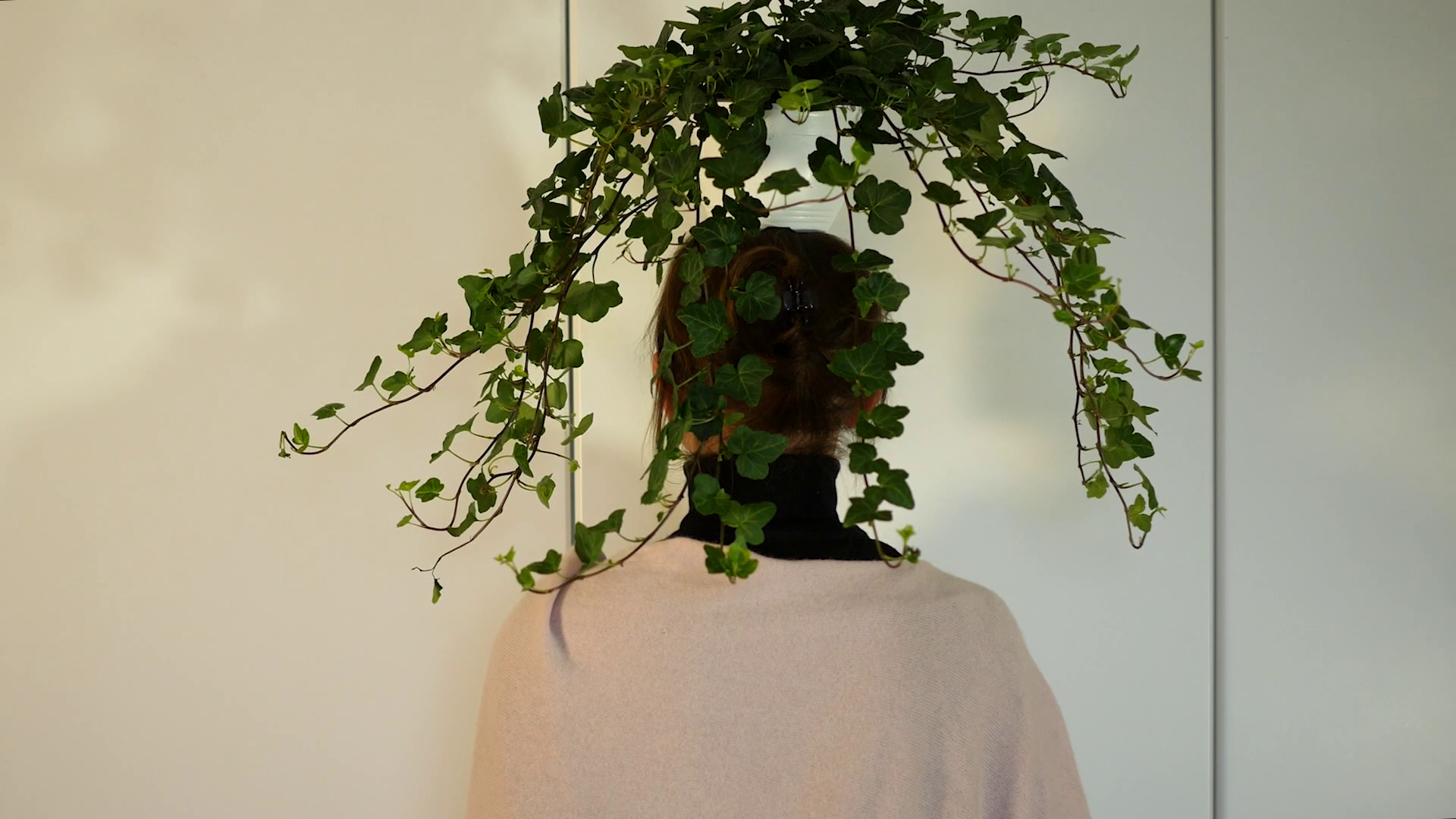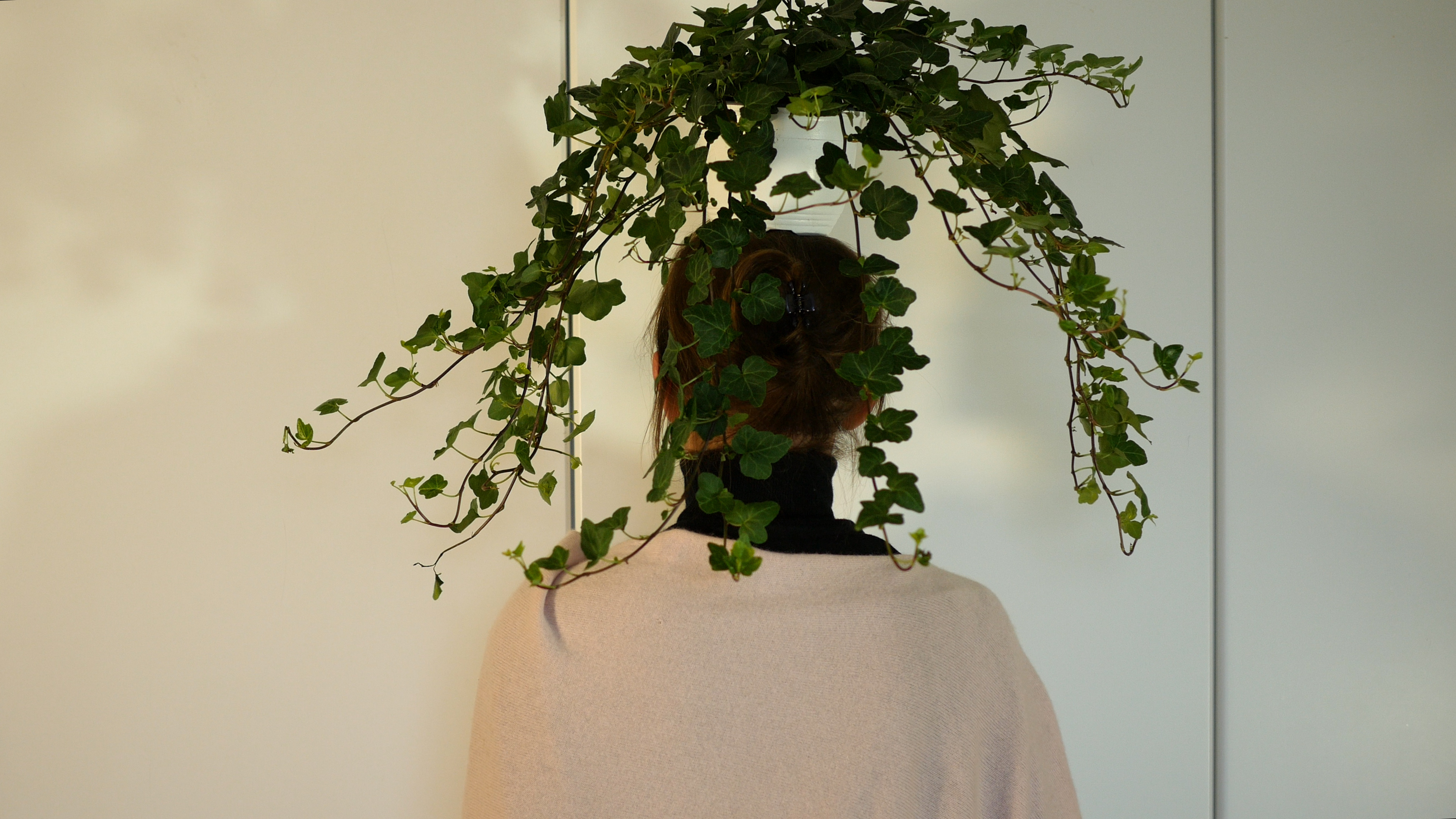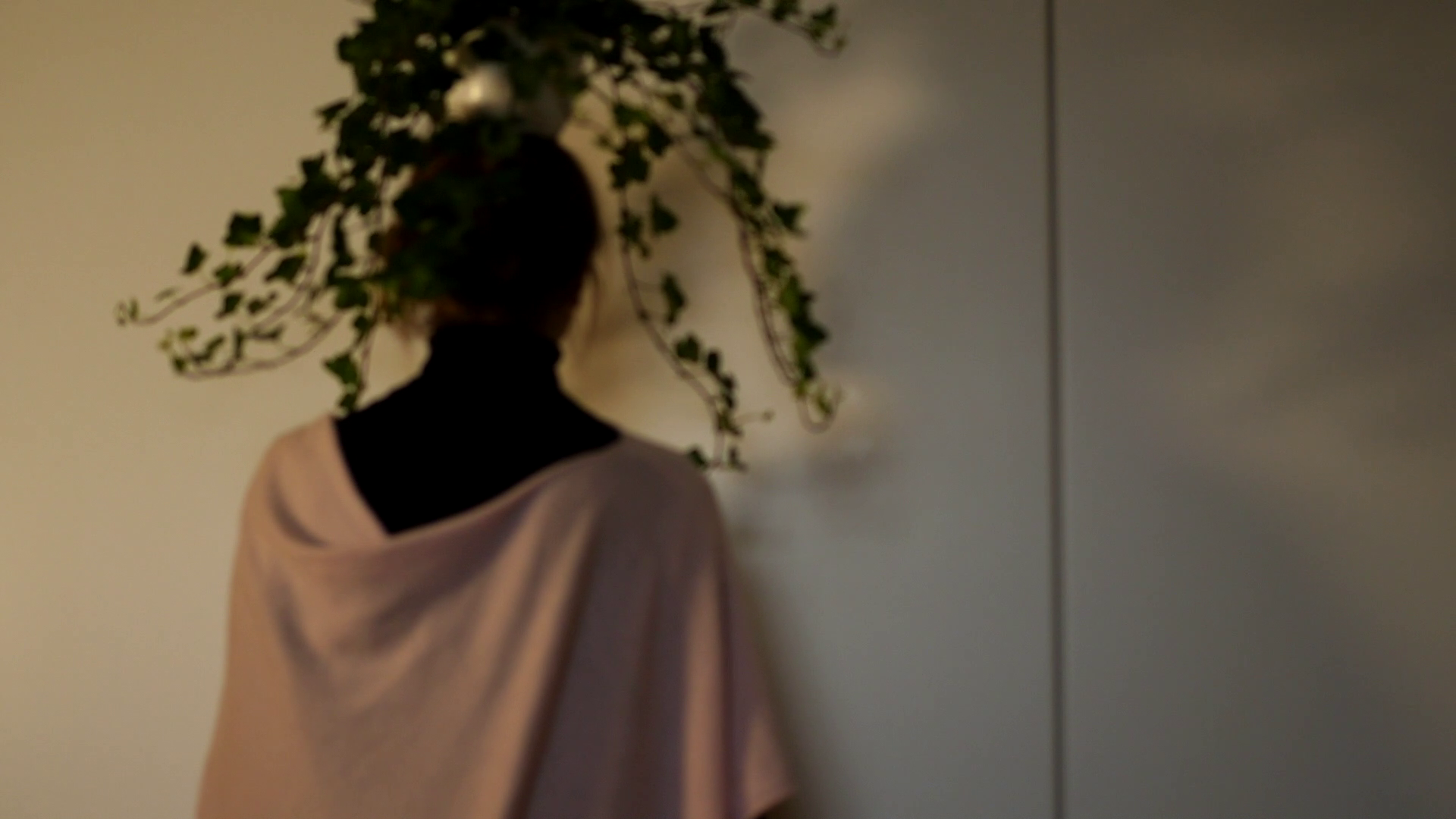 Carrying an Ivy in a pot on my head on November 1 indoors in Helsinki as part of the Tree Calendar, despite October being the month of the ivy. The first attempt was performed in poor light conditions, the second with some light added, and edited into Ivy in October 1 (8 min 57 sec.), Ivy in October 2 (8 min 23 sec.)