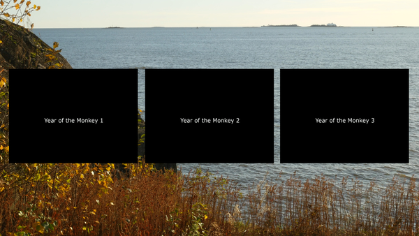 The shorter version of this video essay (15 min.) was presented at the Research Day "How are things done, produced or effected with performance? on 8 November 2017 at University of the Arts Helsinki Theatre Academy. The longer version (25 min. 40 sec.) is attached here as well, as a small file. It contains a compilation of Year of the Monkey - Tomtebo (2005) and Day and Night of the Rooster - Midsummer (2005) inserted into the revisit to the site on 15 October 2017.