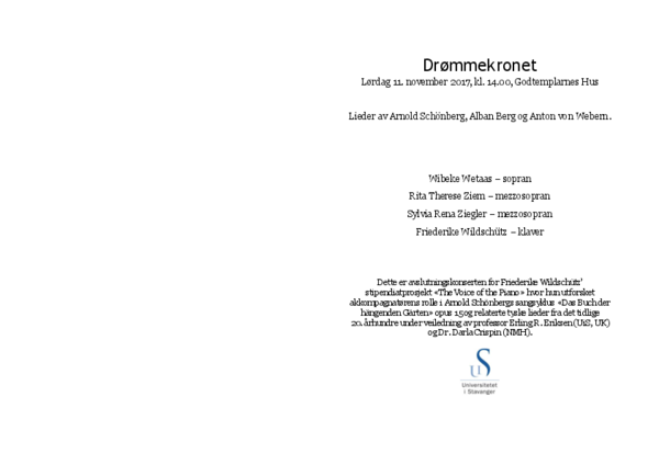 Norwegian Concert Program (Print Version)Norwegian concert program "Drømmekronet", print version: Set the printer to flip the pages on the short side and fold the stack of printed sheets in half.