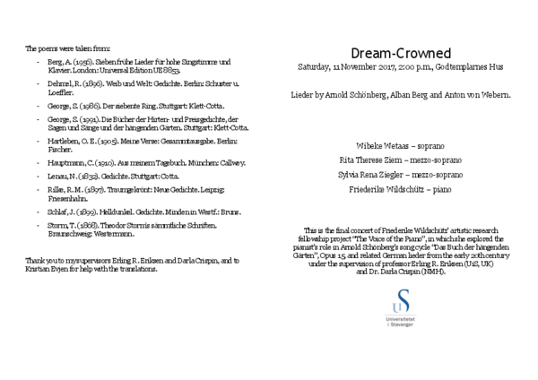 English Concert Program (Print Version)English concert program "Dream-Crowned", print version: Set the printer to flip the pages on the short side and fold the stack of printed sheets in half.